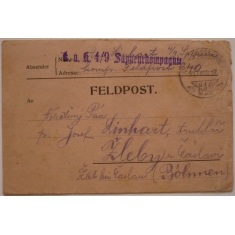 kulatá razítka se znakem, HFPA (Salzburg) 19.III.15; příležitostné razítko BUDAPEST 1916-DEC-30; zálepka s kulatým útvarovým razítkem a němým podacím razítkem FP 12.2.17; zajímavé