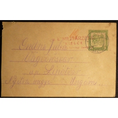 řádkové razítko na lístku polní pošty, denní razítko HADTÁP-POSTAHIVATAL 125; odřené rohy