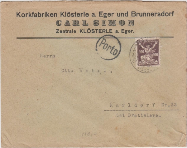 1922 Firemní dopis, Osvobozená republika + PORTO