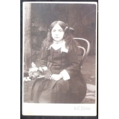 dívka s květinou, ateliér Klíč, Židenice, 10x14cm, bezvadné