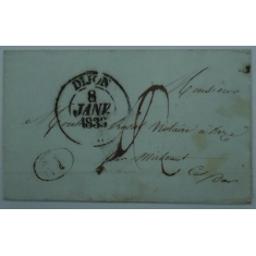 podací razítko DIJON 8/JANV/1833, příchozí razítko MIREBEAU-SUR-BEZE ; hezké