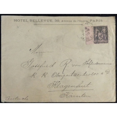 MICHEL 80, Alegorie 25c s kupónem, razítko PARIS, příchozí razítko KLAGENFURT; vzadu popsaný