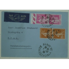 hezká frankatura, razítko PARIS 1.XII.38, vzadu PRAHA 82 LETIŠTĚ; hezké