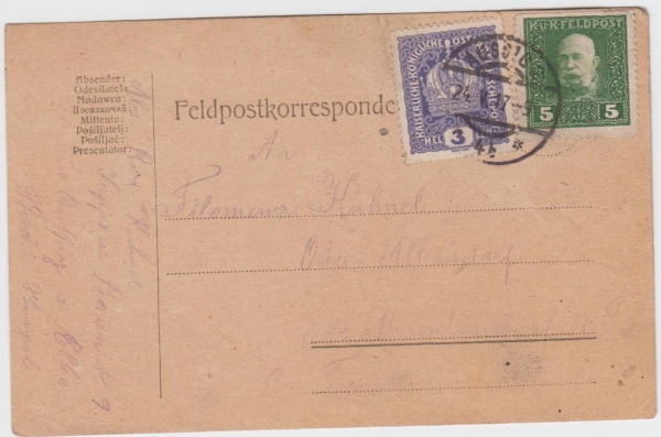1917 Frankovaný lístek polní pošty