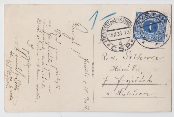 koláž "čtyřlístek", litografie, prošlá, dlouhá adresa, Q2