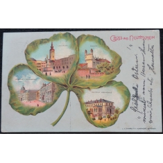 koláž "čtyřlístek", litografie, prošlá, dlouhá adresa, Q2