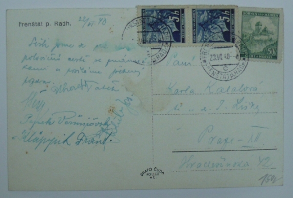 koláž "čtyřlístek", litografie, prošlá, dlouhá adresa, Q2