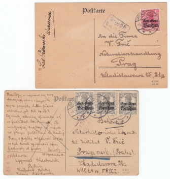 1918 Generální gouvernement Warschau, sestava 2 korespondenčních lístků do Prahy