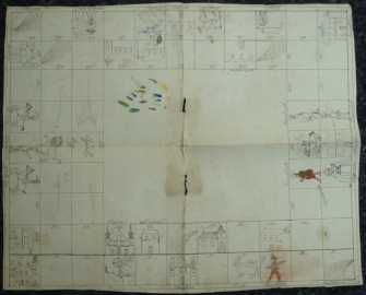 neznámá stolní hra, 44x36cm; prodřeno ve skladech
