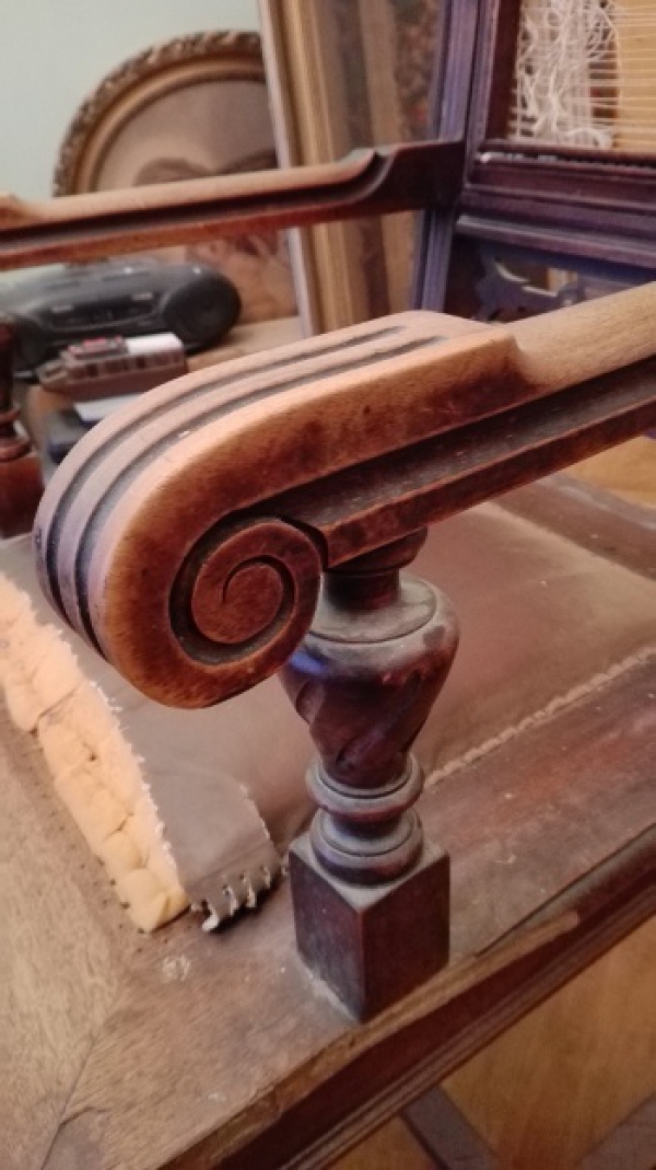 replika historického nábytku vyrobená kolem roku 1920, oprava nutná - poškozené čalounění; osobní odběr v Brně nebo smluvní doprava