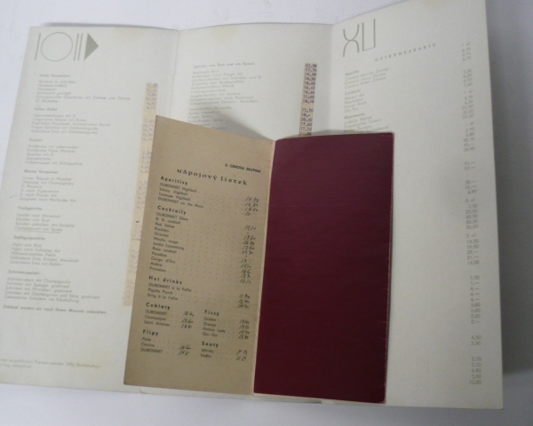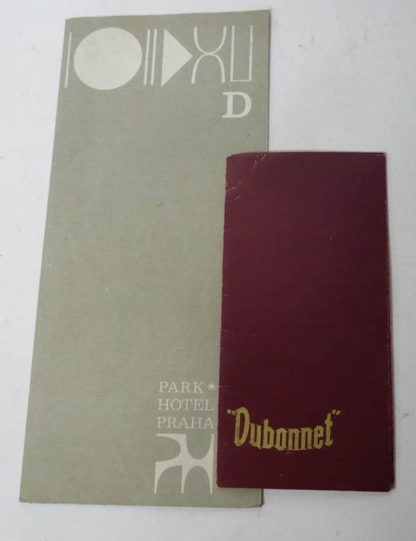 Historické jídelní lístky, Praha, sestava 2 jídelních lístků, Park Hotel Praha, Dubonnet