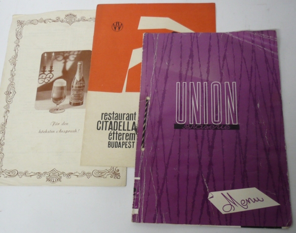 Historické jídelní lístky, sestava 3 jídelních lístků