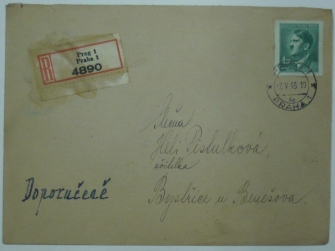 R dopis se známkou POFIS 122, razítko PRAHA 2.V.45; chybí klopa