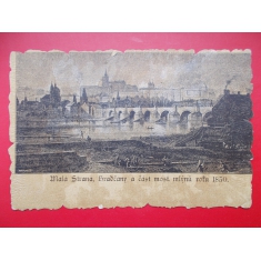 1898 Praha Malá strana Hradčany Karlův most mlýn rytina veduta 1830