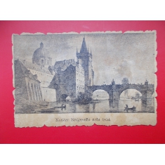 1900 Praha Malá strana Hradčany Karlův most věž litografie dopisnice dlouhá adresa