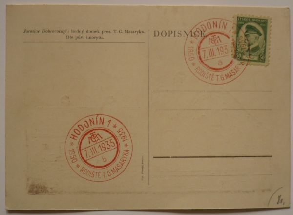 1935 HODONÍN,/ Rodiště T. G. Masaryka
