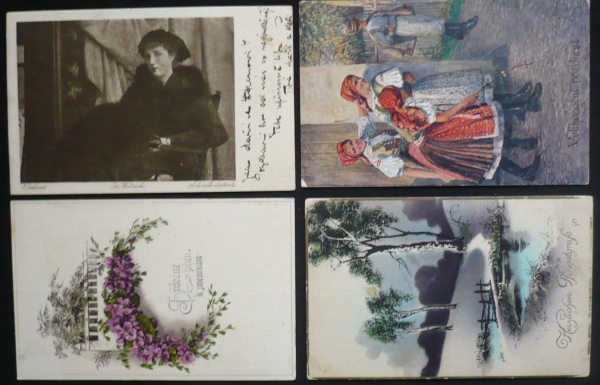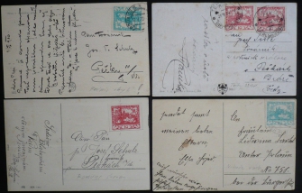 sestava 4 pohlednic se známkami Hradčany s různými deskovými a tiskovými vadami