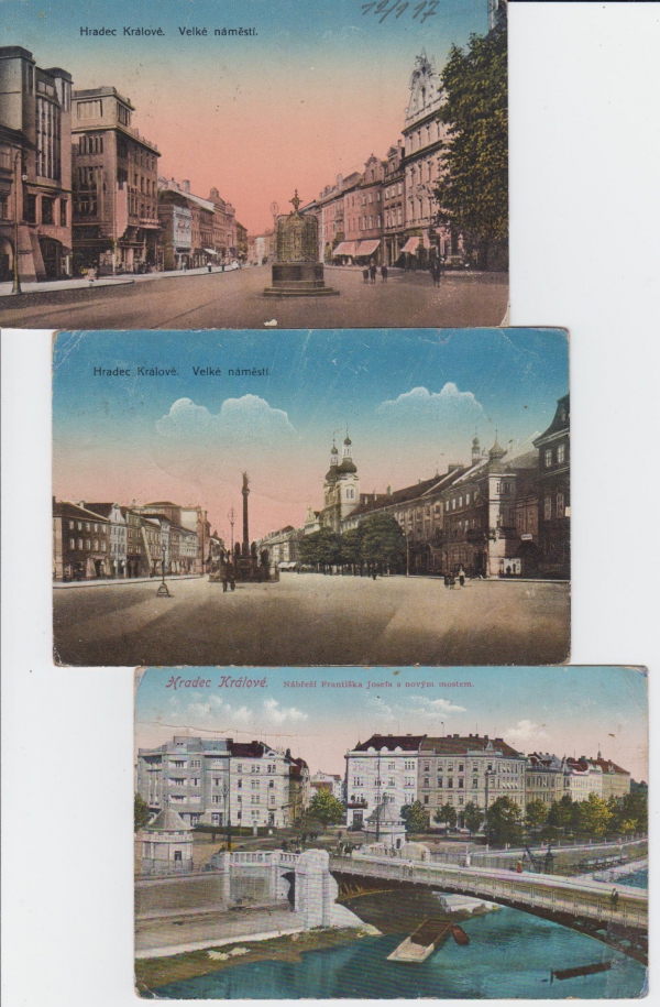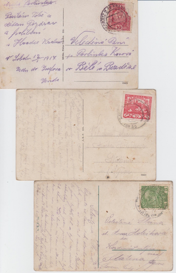 sestava 3 pohlednic; Q2 - odřené růžky