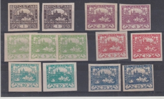Hradšany, sestava 13 známek s barevnými odstíny; **/*