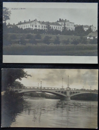 sestava 2ks fotopohlednic, budova a most, prošlé, Q2