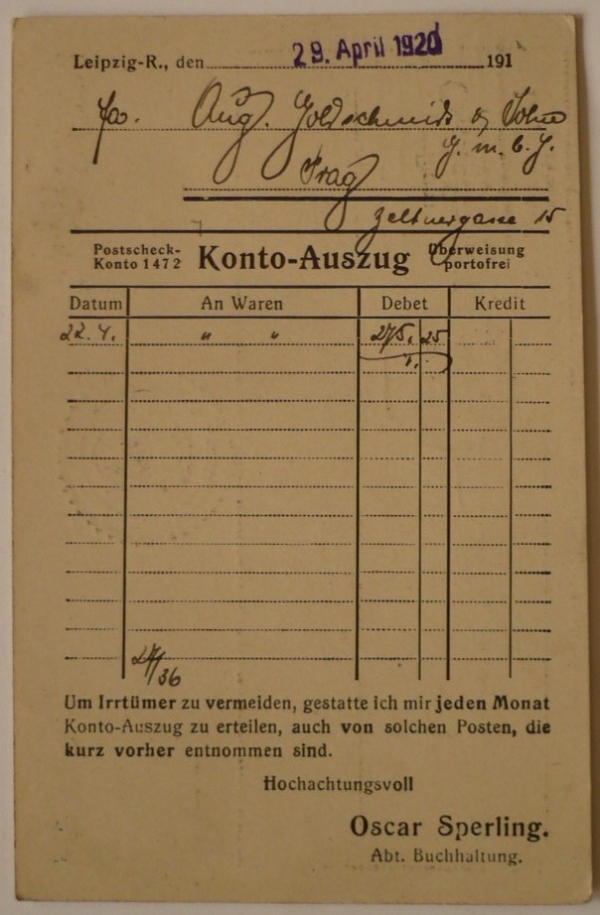 1920 Identifikační celistvost Oscar SPERLING, Leipzig