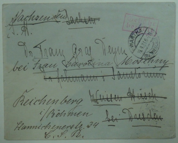 dosílaný dopis do Liberce, placeno hotově, razítko WARTHA 19.9.23; zajínavé