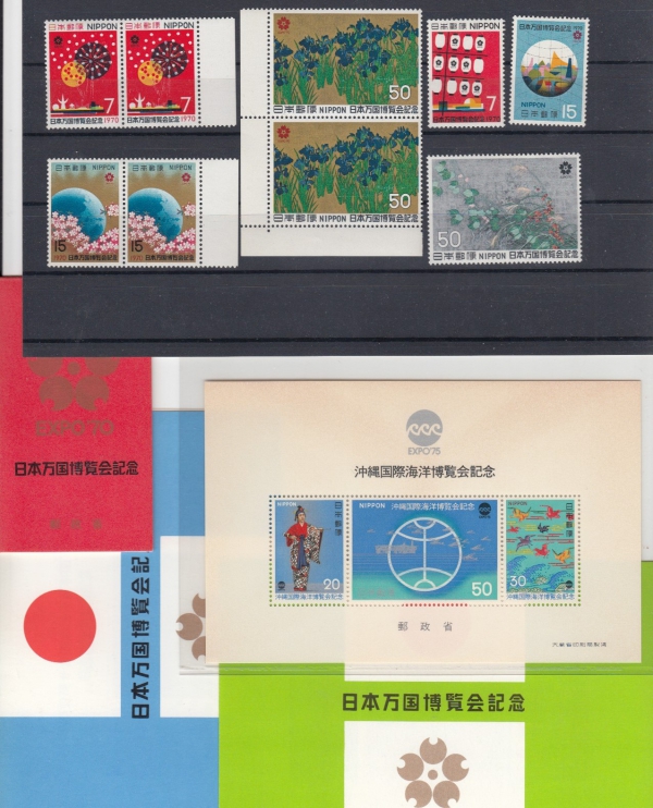 MICHEL 1070-1072, série v rohových dvoupáskách, aršík Bl.80 a kompletní známkový sešitek + EXPO 1970 / III, 1076-1078, aršík Bl.81 + EXPO 1975, aršík Ml.91; vše bezvadné, svěží