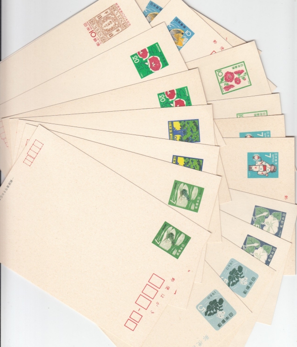 katalog JSDA "Greeting Post Cards" No. 24-25, 28-29, 44-47, 52-55, 60-61, 64-65 + "Commemorative Post Card" No. 44-45; neprošlé, pěkný stav, katalog cca 5.000 jenů