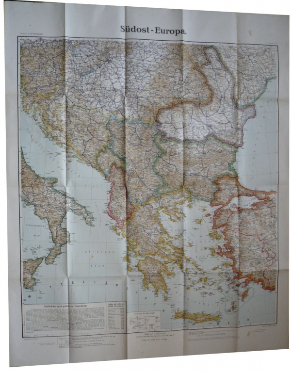 77x93cm, 1:2.000.000, autor Dr. Karl Peucker, vydal Artaria, Wien, železniční trasy; výborný stav