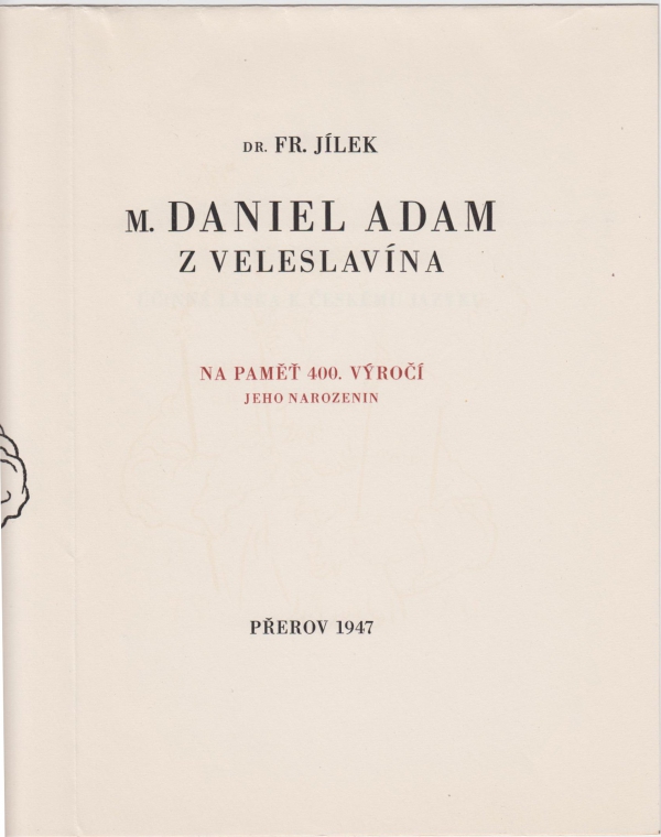 Jílek, Fr.: Daniel Adam z Veleslavína