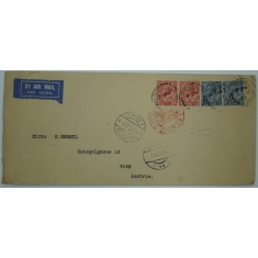 razítko LONDON 6.7.33, červený kruhový kašet LUFTPOSTAMT BERLIN, příchozí razítko WIEN, natrženo na adresní straně