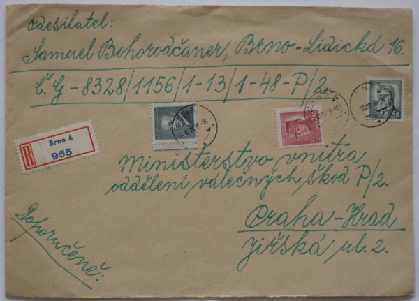 odesílatel: Samuel Bohorodčaner, Brno; velká obálka, bezvadné