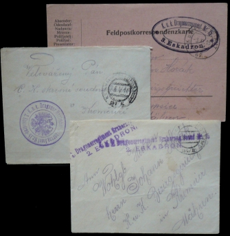 sestava 3 celistvostí s útvarovými razítky "českého" pluku; standardní kvalita