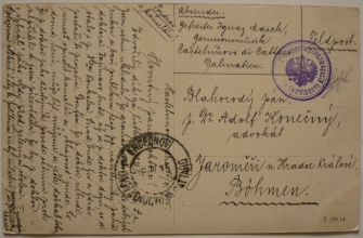 K.u.K. MFPA POLA, K.u.K. ELEKTRO-KOMP. aj., cenzura, razítko "VON DER ARMEE IM FELDE"; zachovalé