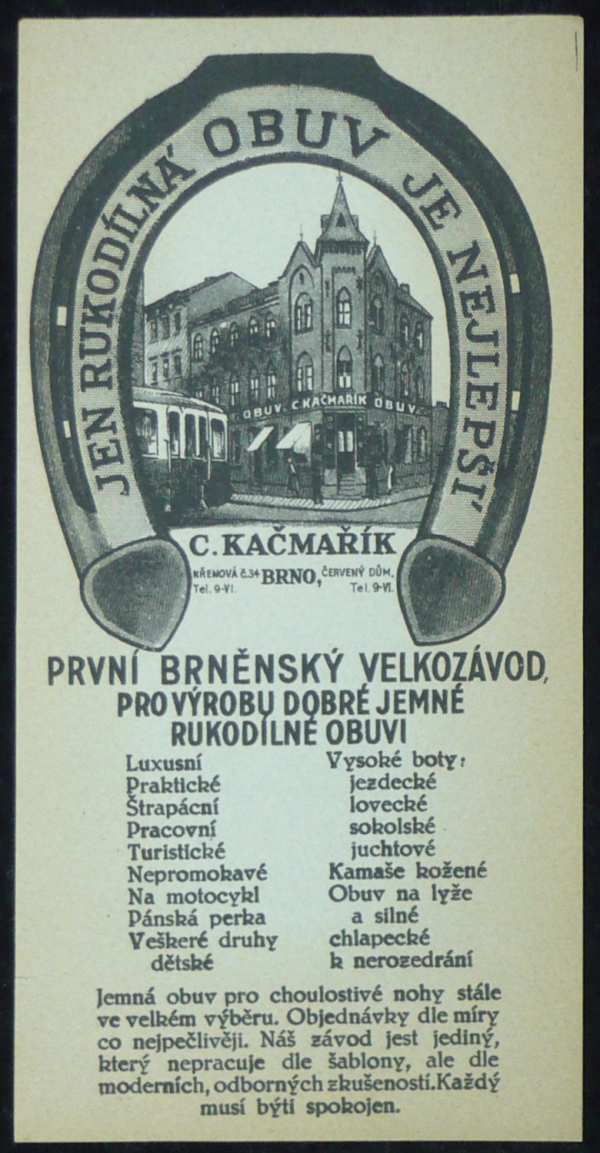 První brněnský velkozávod pro výrobu obuvi, 8x15cm; malé natržení v levém okraji