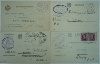 sestava 4 korespondenčních lístků farních úřadů, mj. souběžný rakouský lístek, 1x s frankaturou; hezké