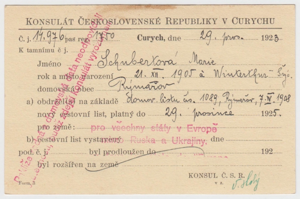 1923 Konzulát ČSR v Curychu