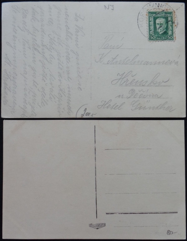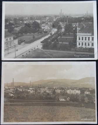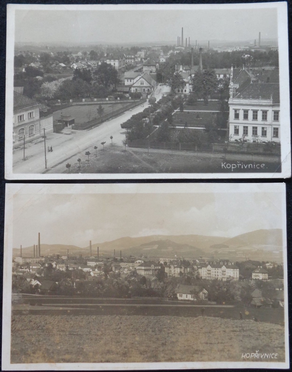 sestava 2ks fotopohlednic, 1x prošlá, 1x zlomený roh