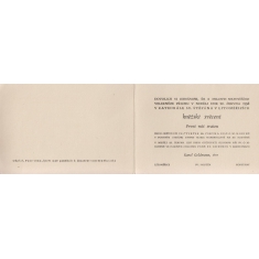 Koryčany, pozvánka na kněžské svěcení, Karel Goldmann