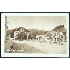 Dolní Rožínka, fotopohlednice Knoll, ulice, prošlá, stržená známka, Q1