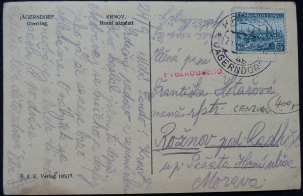 fotopohlednice, část náměstí, prošlá, cenzura, Q2