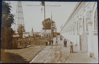 fotopohlednice, Jubilejní hospodářsko-průmyslová výstava v r. 1908, čast stožáru větrníku, foto Horák, prošlá, Q2
