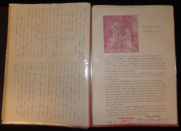 účastník odboje, katolický kněz, politický vězeň, odsouzen v r. 1952; sestava osobních dopisů, mj. s vlastnoručním podpisem BENEŠOVÁ Hana (1885–1974), manželka prezidenta Beneše, úřední oznámení s řádkovým razítkem Krajské velitelství StB Praha, uloženo v pořadači; zajímavý životní příběh