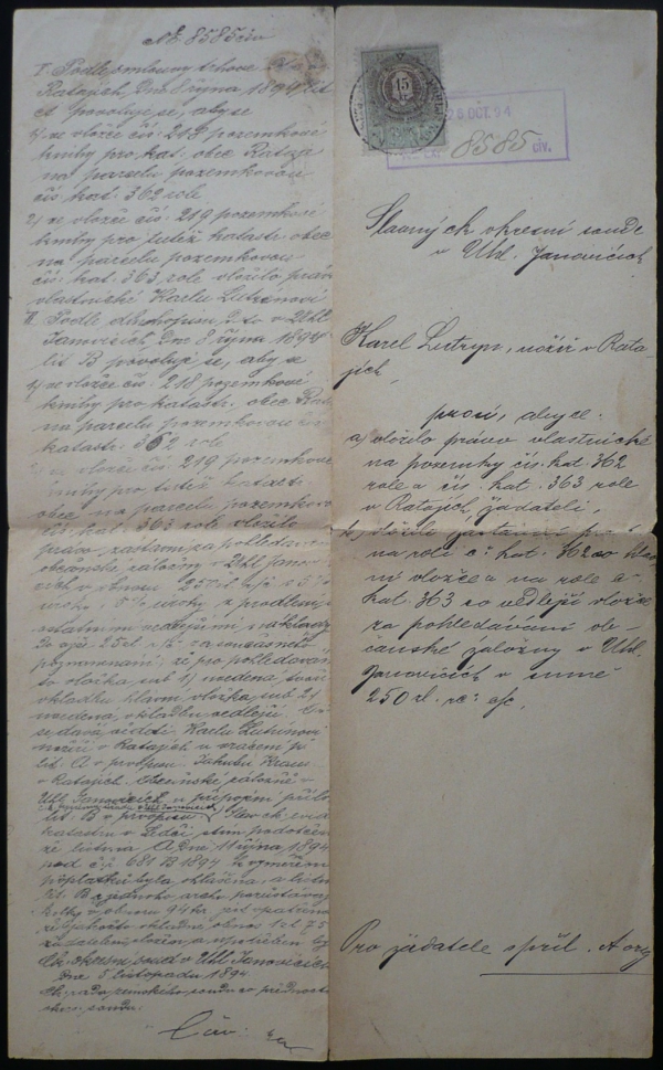 1894 Kupní smlouva - Rataje