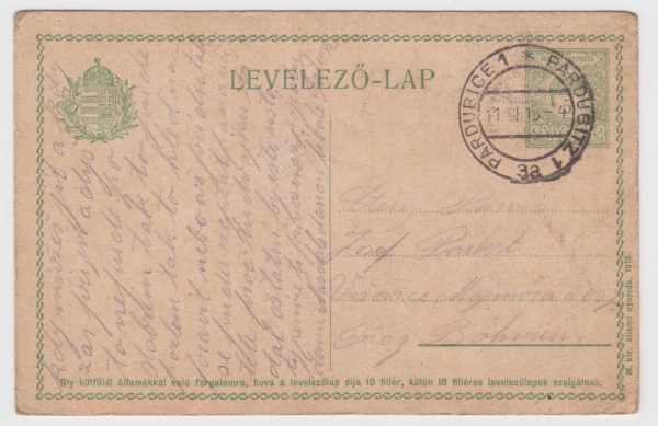1915 Kuriozita - uherská dopisnice použitá v Čechách