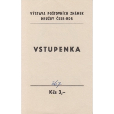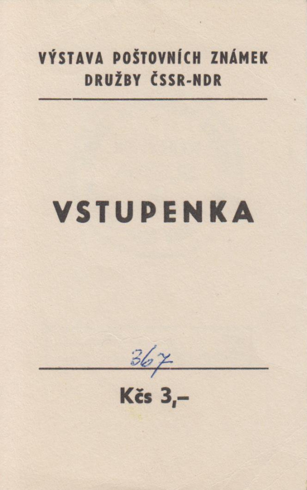 obálka se vstupenkou na filatelistickou výstavu Družba ČSSR-NDR, razítko kurýrní služby, rámečkové razítko PŘEVZAL PIONÝR se jménem Balušík; bezvadné