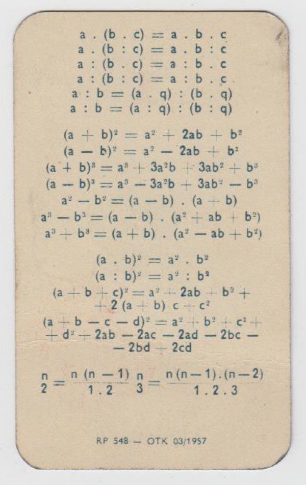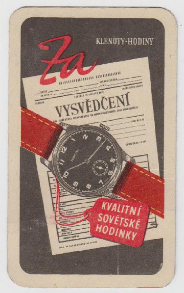 školní pomůcka s propagačním textem, velikost hrací karty