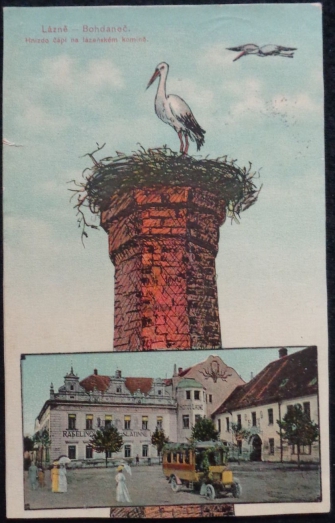 koláž "obraz v rámečku", čáp na komíně, prošlá, Q2