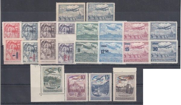 Letecké známky 1946-1951, kompletní sestava; svěží