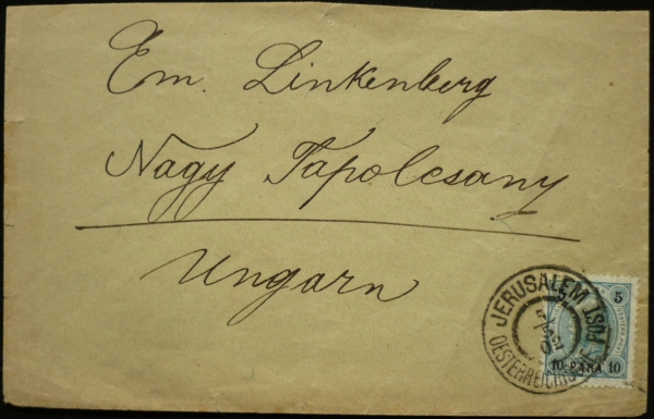 celistvost do Topolčan, 10Para/ 5h, razítko JERUSALEM 5/5/2; hezké